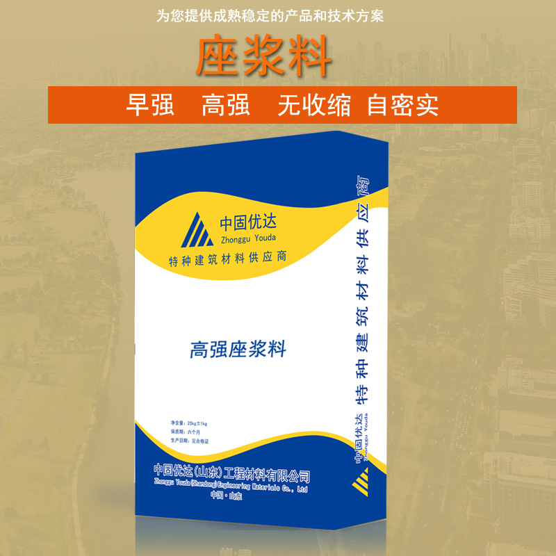 座漿料是灌漿料的一種,由水泥作為結(jié)合劑、高強(qiáng)度細(xì)骨料、復(fù)合膨脹劑、減水劑等摻合料及其他外加復(fù)合材料組成的水泥基干混料,具有早強(qiáng)、高強(qiáng)度、微膨脹、無收縮、不流掛、易施工等性能,加水?dāng)嚢韬缶哂杏|變性、可塑性,硬化性保水性好,座漿料的使用可以避免其他灌漿料流動性過大,施工不易,顆粒太粗, 粘性差,泌水嚴(yán)重,開裂爆倉等現(xiàn)象。